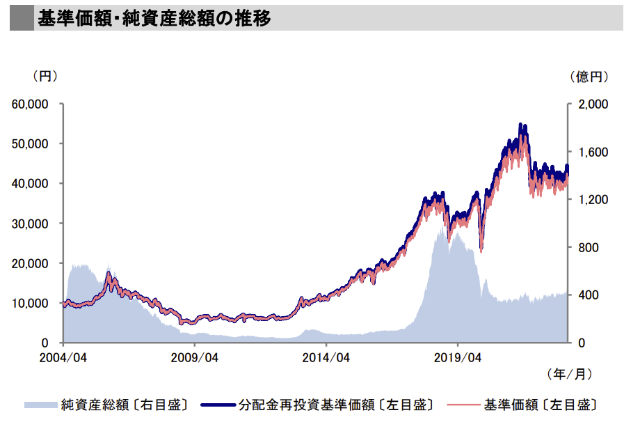 うーん、設定来の数字は335.0%と悪くないなと思いましたが、よく見るとファンド設定から20年弱経過していますね。