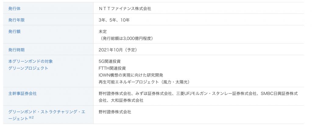 NTTが世界最大規模となるグリーンボンド(環境債)の発行(3000億円)を発表しましたね。発行は今月(2021年10月)となるそうなので、その前にどんな債券なのか?投資すべきなのかどうか?を解説します。