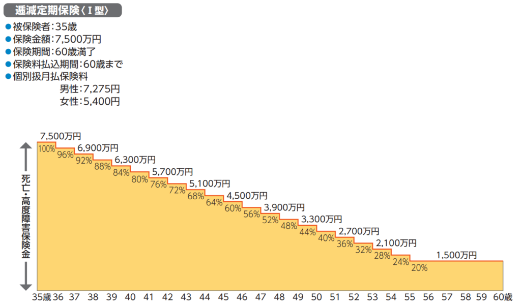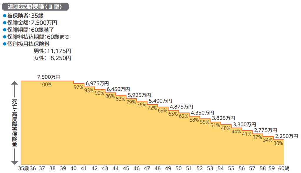 確かに死亡保障に対する保険料は、終身保険より安いので「逓減定期保険」という選択はアリです。どのような保障内容なのか確認していきましょう。