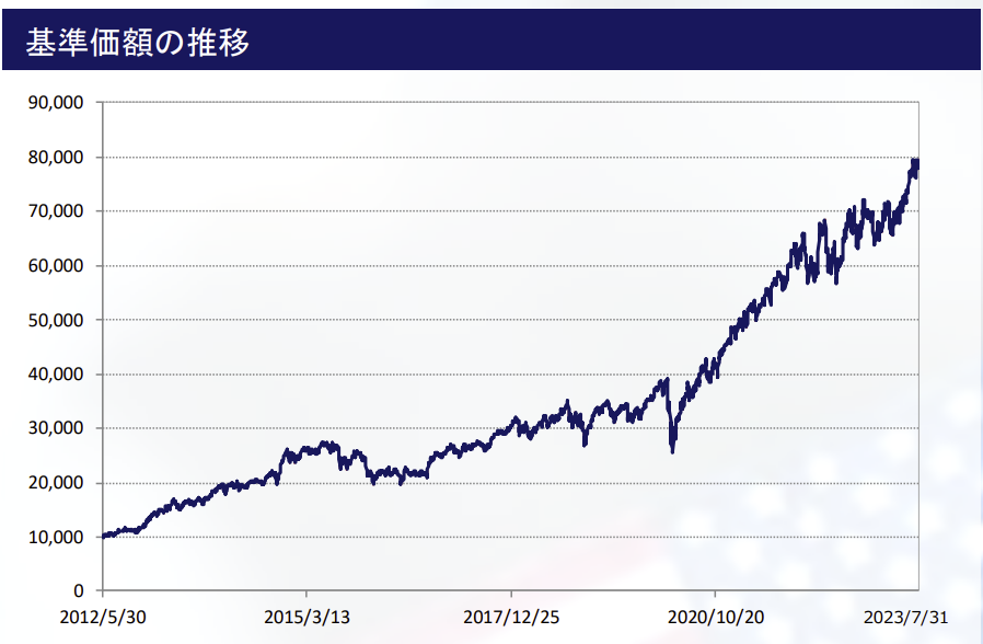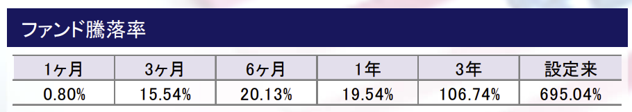 手数料は高いですが、その分しっかり実績を出してくれていますね。設定来でも700%弱の騰落率で安心できます。これは購入検討したいと思います。