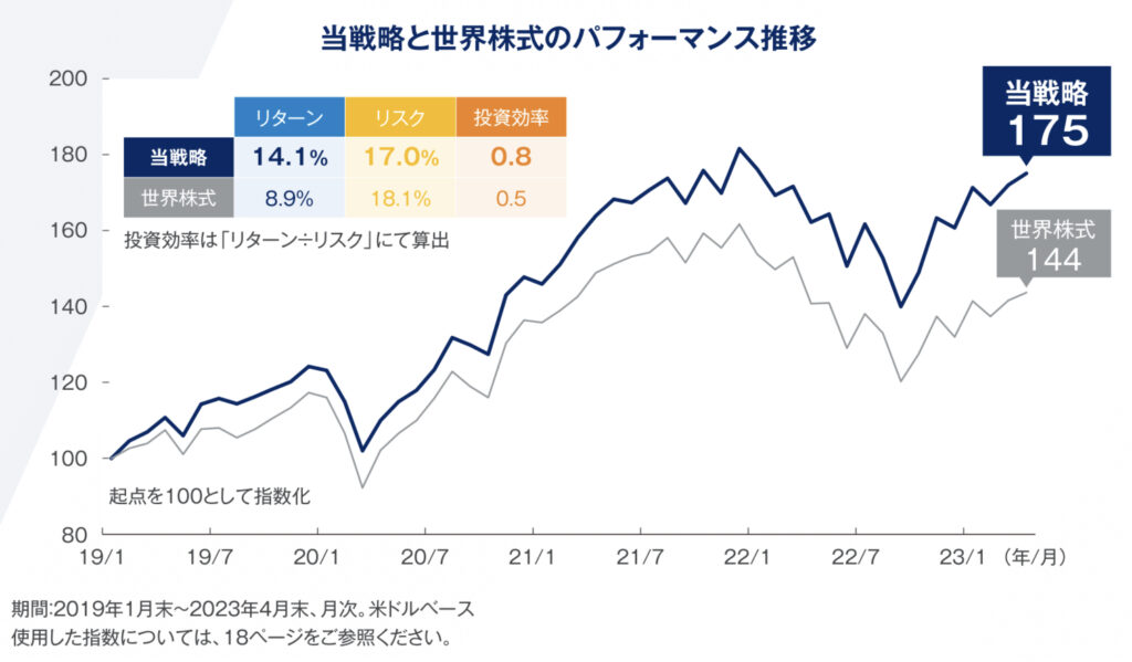 という状況です。ベンチマークである世界株インデックスを大きく上回っています。