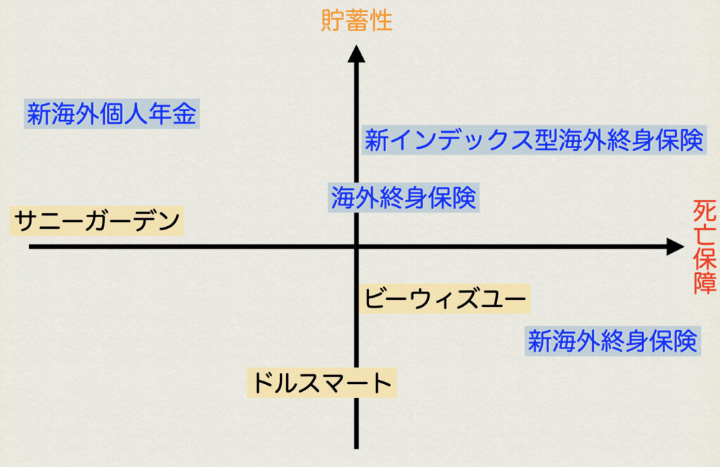 - 国内保険と海外保険の代表商品