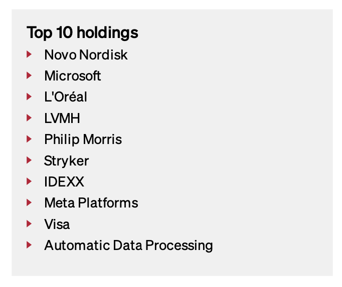 「持続可能なビジネス」を「質の高いビジネス」と考え、圧倒的な市場シェア、特許、流通網、そしてブランドのような無形資産を有している企業群に投資しております。