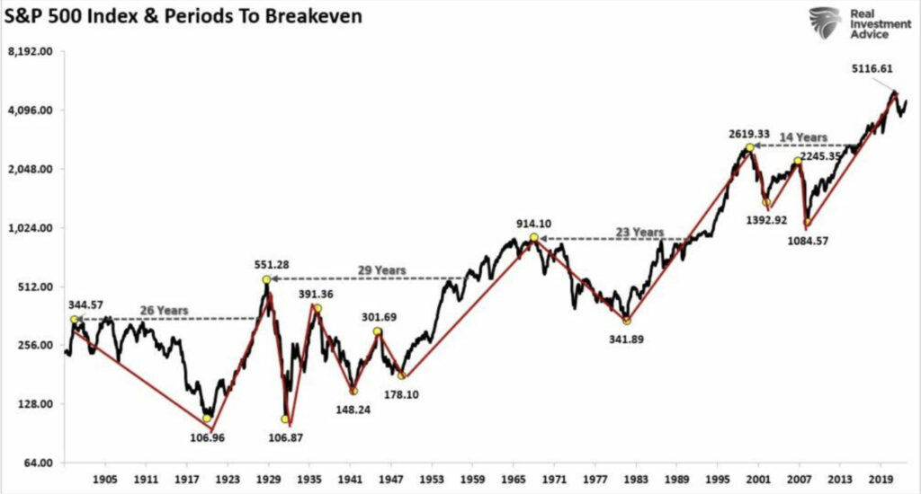 ITバブル崩壊の際、S&P500インデックスで運用して入れば49.1%も暴落しましたが、もとの値に戻るまでには約13年という長い時間を要しております。