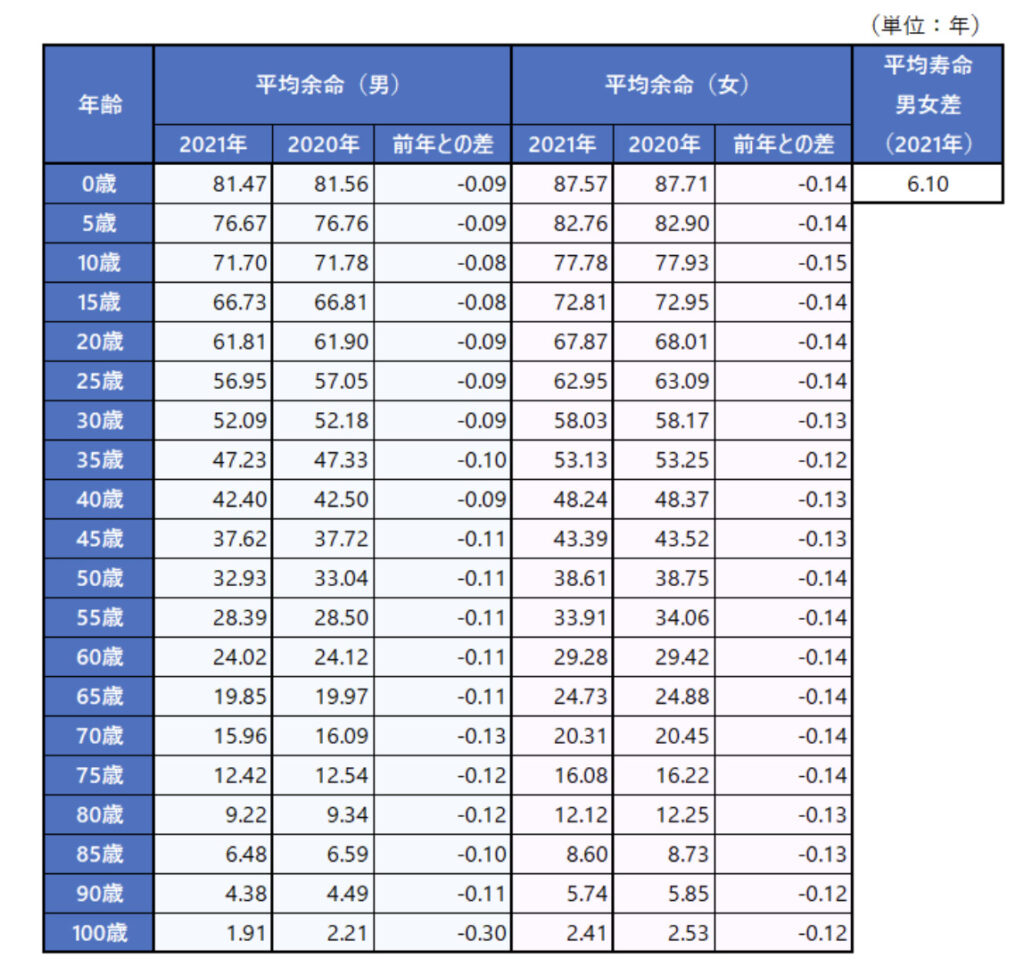 厚生労働省の「簡易生命表(令和3年)」によると、現在50歳の女性の場合、平均余命は38.61歳ですから、生きているうちに資産が尽きてしまうことになりますね。