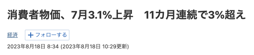 ちなみに7月の消費者物価は、変動の大きい生鮮食品を除く総合指数は前年同月比で3.1%上昇しており、上昇率が3%を上回るのは11カ月連続となっております。
