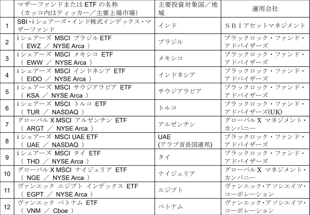 グローバルサウス地域である新興国やフロンティア地域の約30ヵ国に投資を行う予定で、対象国のGDP(国内総生産)比率や流動性等を勘案して構築するようです。
