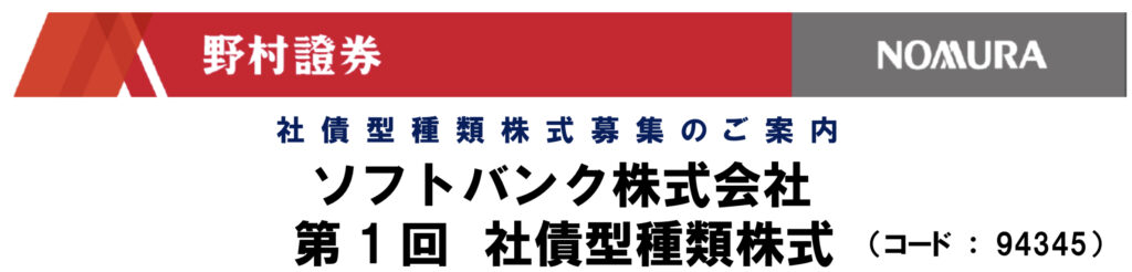 ソフトバンク株式会社 第1回 社債型種類株式(コード:94345)