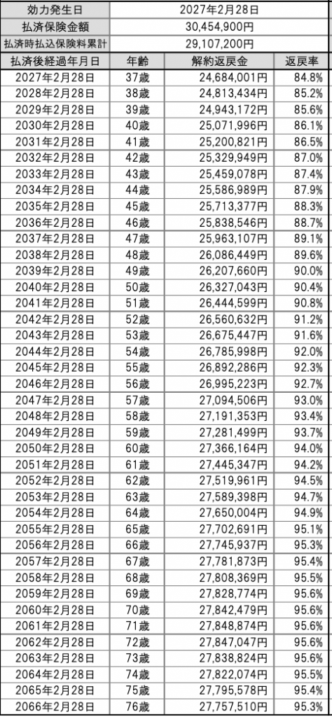31歳で60代にピークってかなり長いですね。しかも、法人としてそこまで継続して事業行なっているかもわからないですし・・・。返戻率もそこまでですし。