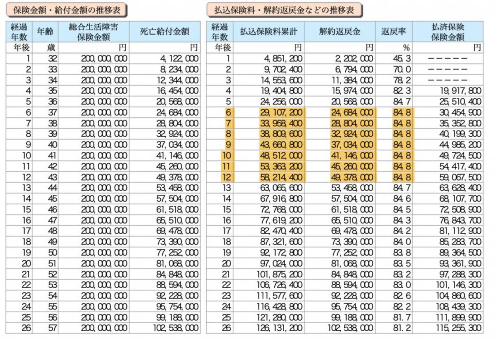 ご契約6〜12年目が解約返戻率のピークですので、このタイミングで払済保険に変更します。
