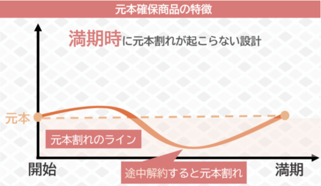 ただし、運用期間中に中途解約した場合には元本割れを起こす可能性はあり、元本が目減りしないという保証はありません。