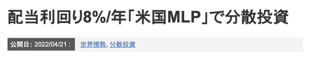 「MLP」に投資するのであれば、海外ETFなどに投資した方が良いですね。