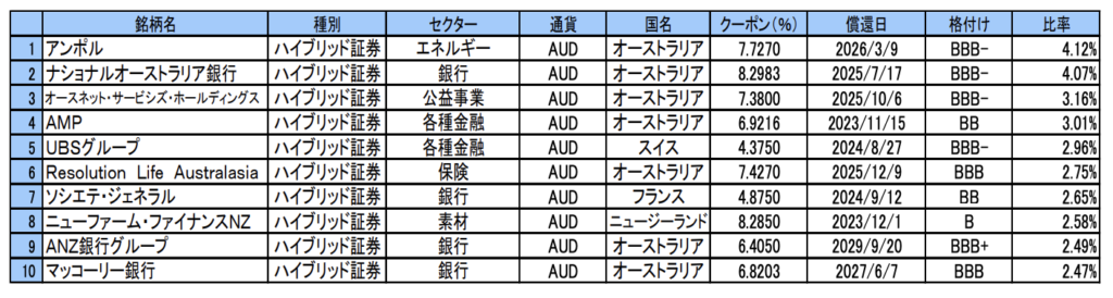 また、どのようなハイブリッド証券に投資されているのでしょうか。