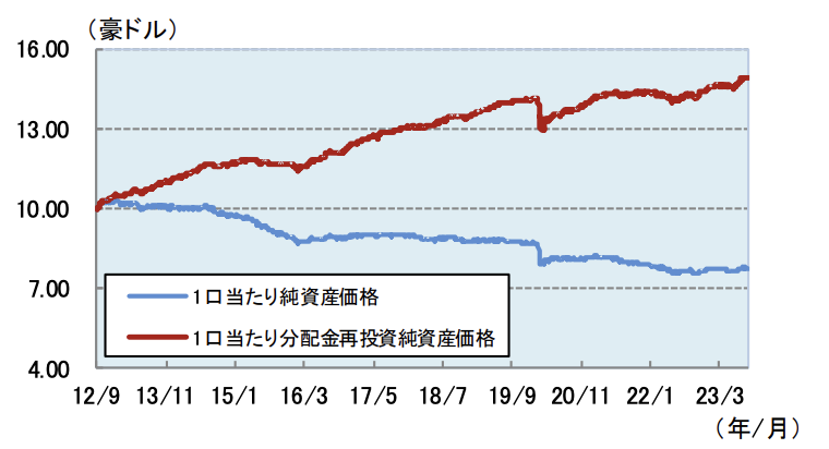毎月10日に分配金が支払われておりますから、1口当たり純資産価格は下がっておりますね。