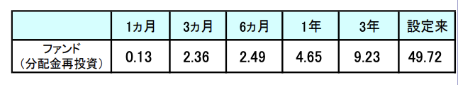 設定来(2012年9月26日)の期間別騰落率と1口当たり純資産価格(青)推移は以下の通りです。