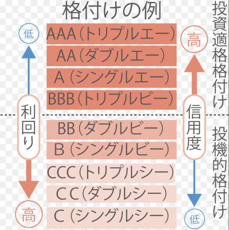 発行体がデフォルト(倒産)した場合、残っている資産の分配において、普通社債から順番に弁済されていくので、法的弁済順位が低くなればなるほど、利金が受け取れないリスクが高くなるということですね。