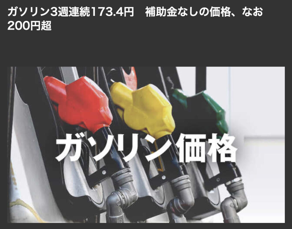 ただ、この価格は政府の補助金が投入された後の価格であり、補助金がない場合の1リットルあたりの全国平均価格は200円を超えています。