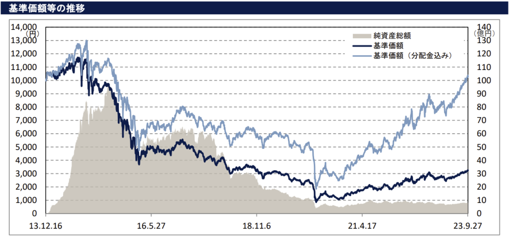 そうですね。ただしタコ足分配のせいかコロナ前までは右肩下がりの基準価額推移になっていますね。コロナ後は逆に右肩上がりになっていますから今から買っていけるか?はよく考えましょう。