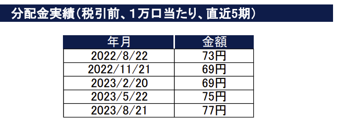 年4回の決算時に分配金が出ます。直近は上記の通りです。