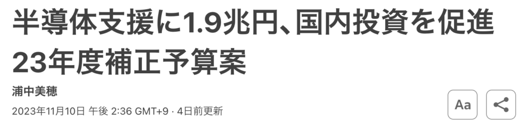 日本政府は11月10日、半導体の国内での生産体制を強化するため、2023年度補正予算案に約1兆9,800億円を盛り込むことを閣議決定しましたし、