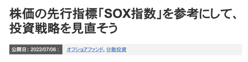 以前、ブログ記事において、SOX指数(フィラデルフィア半導体株価指数)は、主に米国の主要半導体関連企業30銘柄で構成された株価指数で、景気の先行指標と言われていると説明しました。