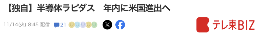 次世代半導体の開発を目指すラピダスも年内にアメリカで新たな事業所を開設することを発表しましたね。