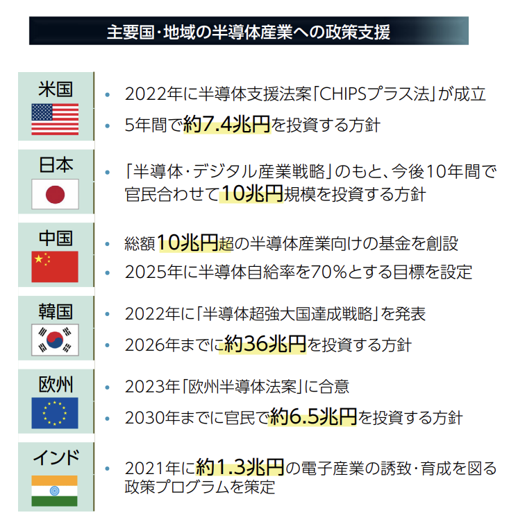 各国も政府支援が加速しており、半導体産業へ巨額投資をして行く方針です。