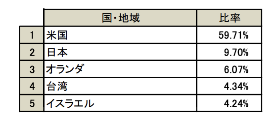 組入上位5ヵ国・地域を見てみると日本のシェアは2番目となっておりますね。