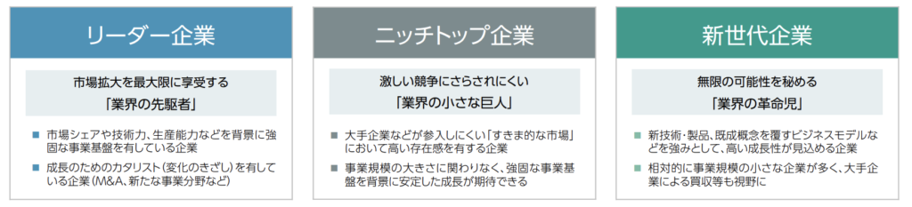 以下の3つの企業タイプに着目して投資銘柄を厳選するようです。