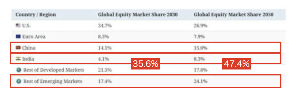 そして、ゴールドマン・サックスは世界の株式市場全体に占める新興国の割合は