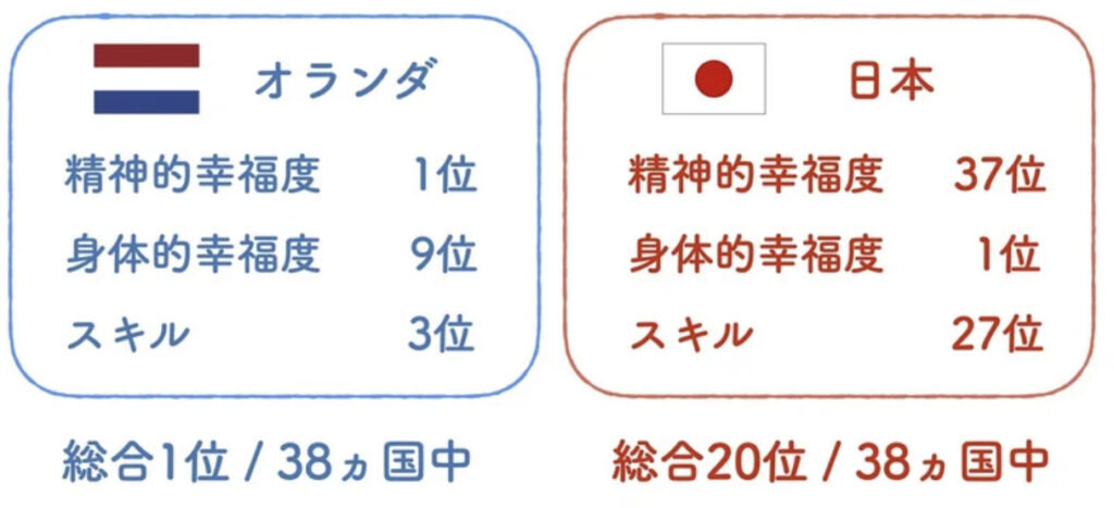 更に冒頭でちょっと書いたように、オランダはシュタイナー、イエナプラン、モンテッソーリ教育が浸透しており、自分で考え、自分で決めて行動する教育が尊重されてます。そのため、オランダの子どもは幸福度世界一だと評価されてるようですね。