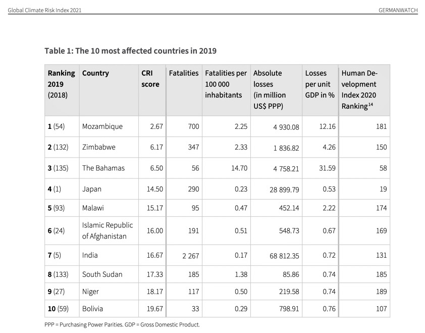 日本が世界でも有数の自然災害大国であることは言わずもがな。ドイツNGOジャーマンウォッチが発表した「世界気候リスク指標2021」には気候変動のリスクに晒されている国がランキング形式で紹介されていて、日本は第4位。先進国の中では圧倒的1位です。
