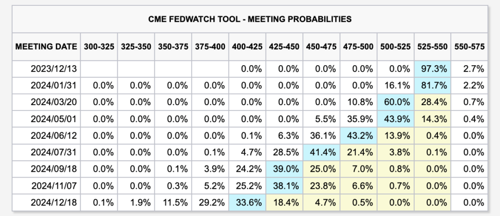 市場では、今月のFOMC(連邦公開市場委員会)で金利を据え置き、2024年の早い段階で利下げに動くとの観測が拡がっています。