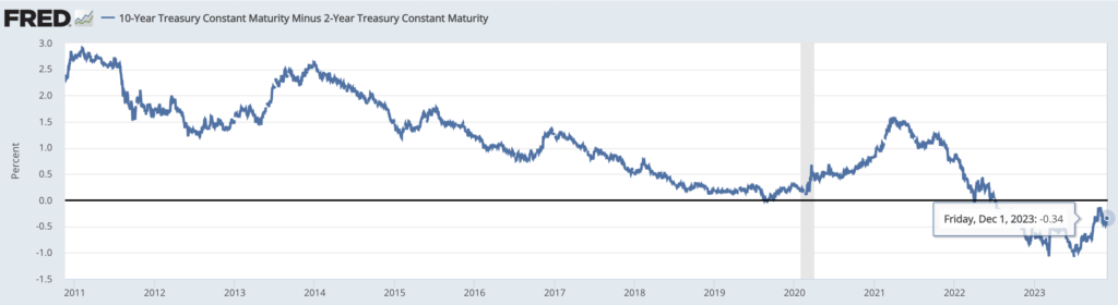 この2つが同じ時期に発生した場合は景気後退に向かうといわれておりますから、2024年は景気後退に陥る可能性があると考えておいた方が良いでしょう。