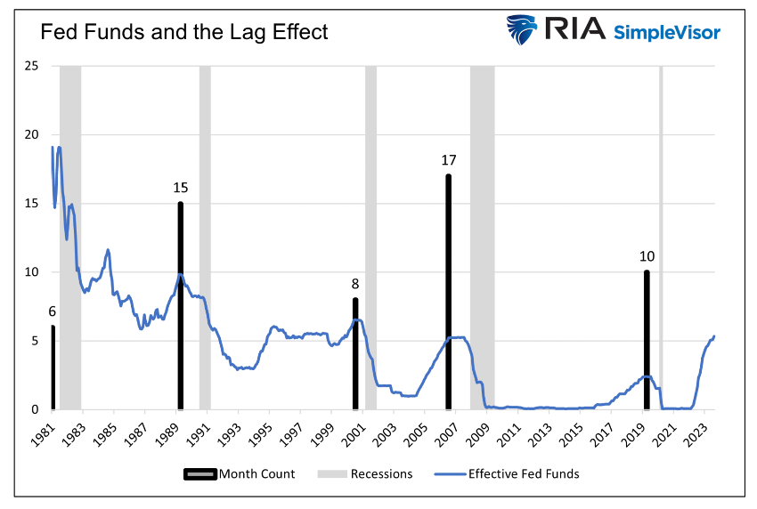 FRBが最後の利上げしたのは2023年7月でしたから、それが最後の利上げだとすると、2024年6月頃には景気後退が起こる可能性がありますね。