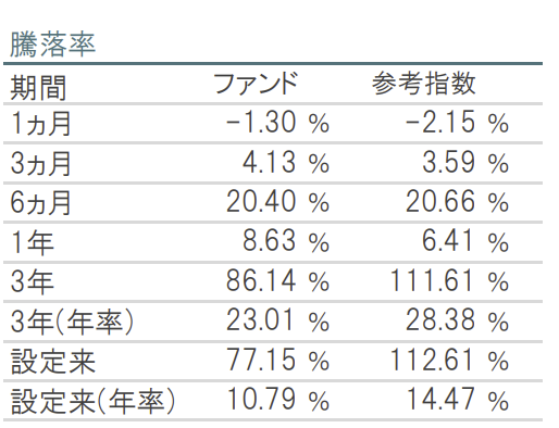 管理費用も1%程度ですし、3年騰落率は十分かと思います。