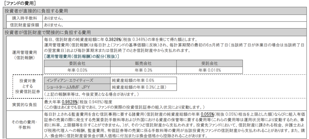毎年の管理費用は年0.9828%、その他費用も年0.055%程度かかります。