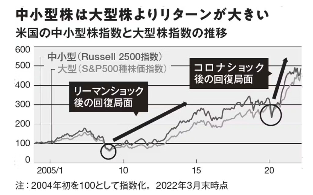 • 利下げになれば、中小型株式の上昇率は高くなる