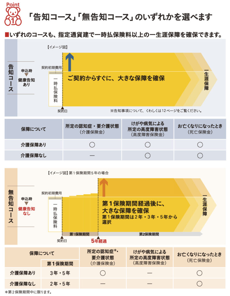 ・無告知コース 介護保障あり 100% 第1保険期間5年