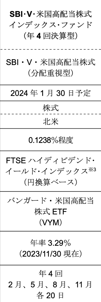 SBIアセットマネジメント株式会社が新しいファンド「SBI・V・米国高配当株式インデックス・ファンド(年4回決算型)」を発表しました。