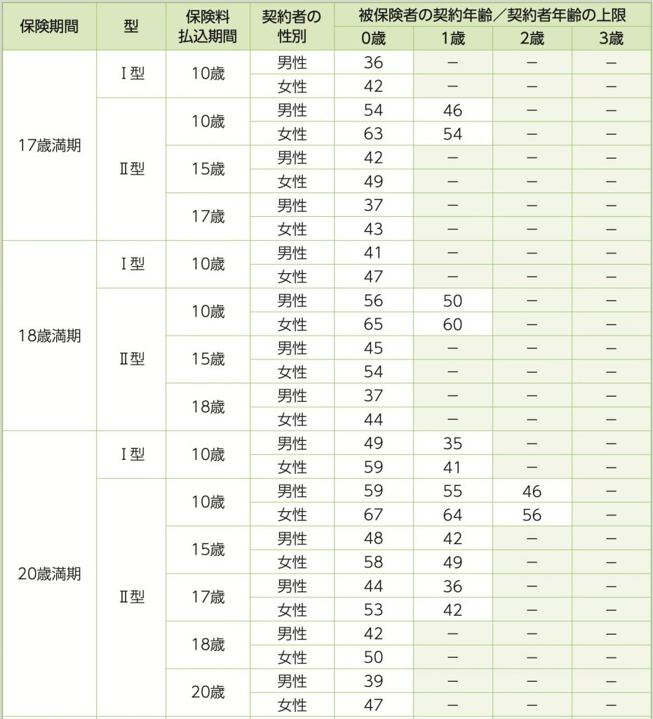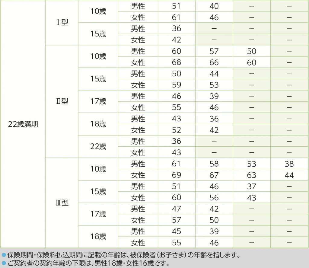 払込期間:10歳、15歳、17歳、18歳、20歳、22歳 ※2