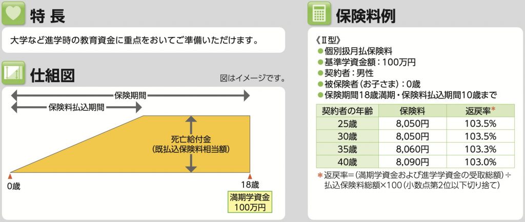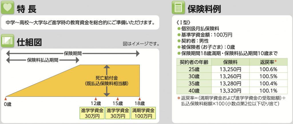 - 契約者(親)が死亡や高度障害になったときは、保険料の支払いが免除されますが、満期金は受け取れます。
