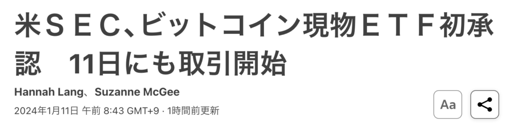 • 「ビットコイン現物ETF」の承認で、ETFに投資することでビットコインの価値に投資することができる