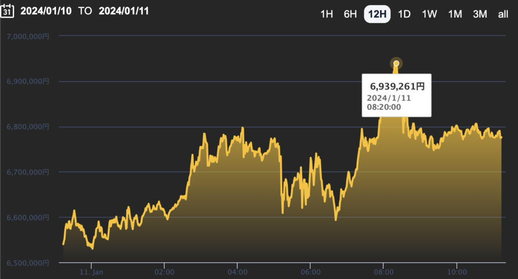 今朝、私はWBS(ワールドビジネスサテライト)の速報でこのニュースを知ったのですが、わたくしがビットコインの価格を調べたタイミングでは上昇しておりましたが、8時20分以降は落ち着いているようですね。