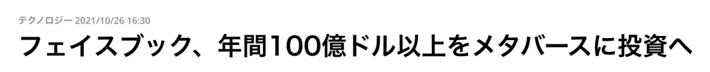 先日、フェイスブックがメタバース関連で1万人規模の新規雇用を行うことを発表しましたが、昨日は年間で100億ドル以上をメタバースに投資することを発表しました。