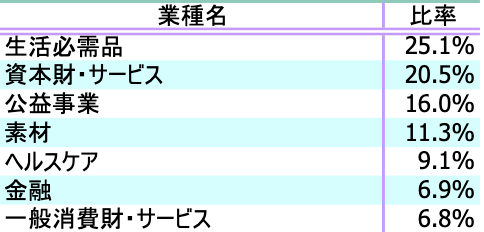 業種別の内訳を見ると、このファンドには情報技術セクターが入っていないようですね。