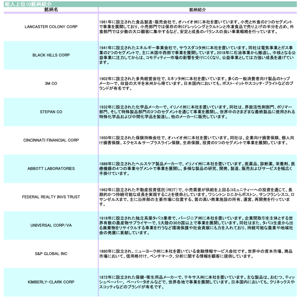 - このファンドは50年以上連続で増配している株式等に投資するファンド