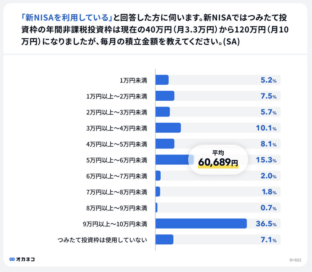 - 新NISAを利用する人の積立設定金額は5〜6万円