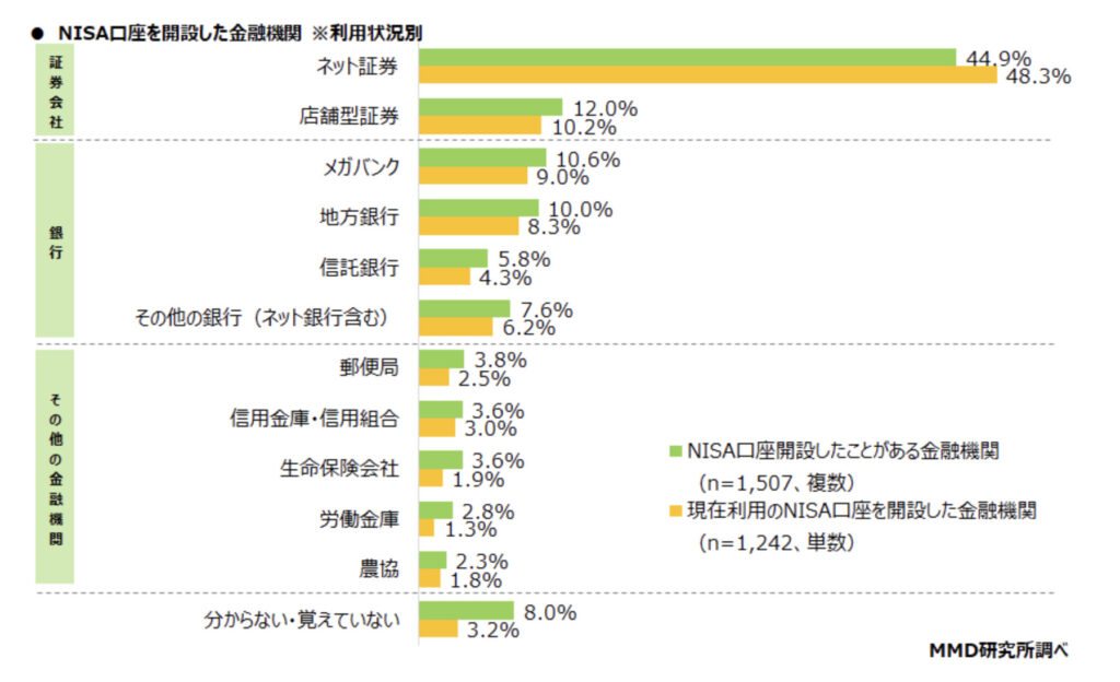 以下「MMD研究所調べ」からネット証券大手5社のシェアが約5割だとすると、