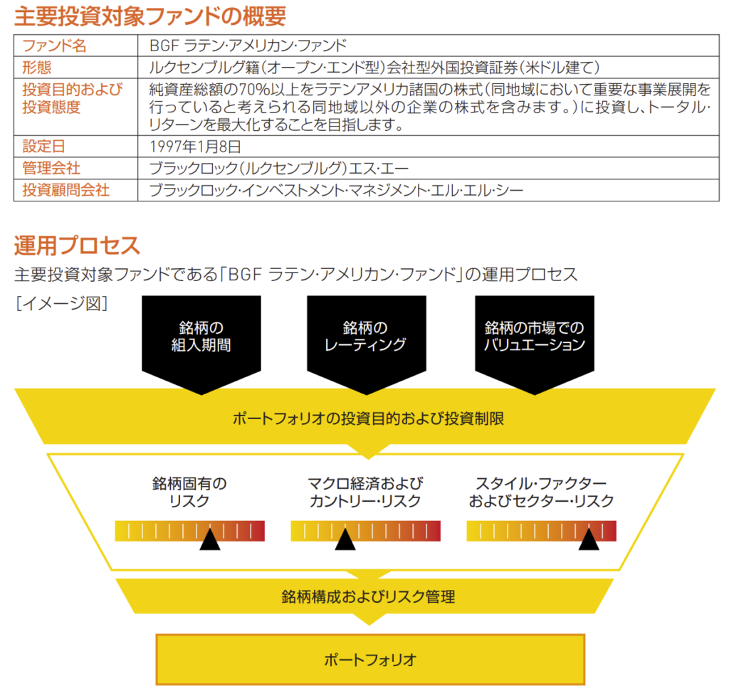 ファンド·オブ·ファンズ形式による運用で主要投資対象はBGF ラテン·アメリカン·ファンドになります。